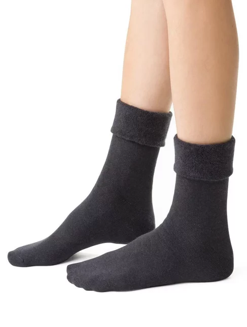 Sosetele simple flausate cu margine intoarsa Steven S110 sunt concepute pentru a oferi caldura si confort in sezonul rece. Interiorul flausat pastreaza temperatura optima a picioarelor, in timp ce bumbacul si fibrele elastice din compozitie asigura o purtare placuta si flexibila. Marginea intoarsa adauga un plus de lejeritate si confort, fara a exercita presiune asupra piciorului.