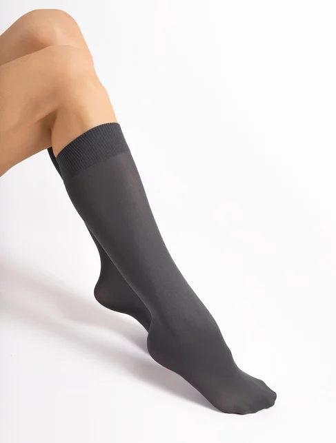 Aceste sosete lungi 3/4 din microfibra sunt alegerea perfecta pentru un plus de rezistenta si confort. Grosimea de 60 den le face opace si durabile, pastrand in acelasi timp delicatetea la atingere. Banda ingusta de prindere este moale si ferma, asigurand stabilitate in timpul purtarii.